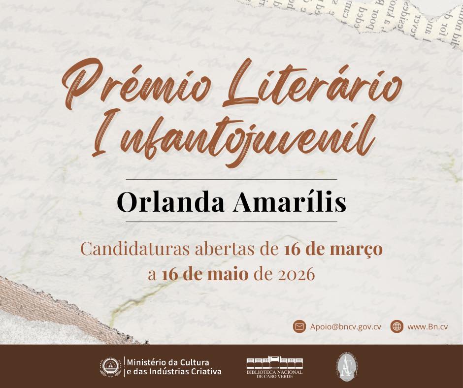 Estão abertas as candidaturas à 2.ª edição do Prémio Literário Infantojuvenil Orlanda Amarílis, instituído pelo Ministério da Cultura e das Indústrias Criativas, através da Biblioteca Nacional de Cabo Verde, em parceria com a Associação Cabo-verdiana de Letras.